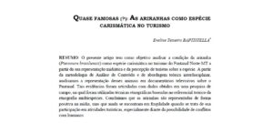 O presente artigo tem como objetivo analisar a condição da ariranha (Pteronura brasiliensis) como espécie carismática no turismo do Pantanal Norte-MT a partir da sua representação midiática e da percepção de turistas sobre a espécie. A partir da metodologia de Análise de Conteúdo e de abordagem teórica interdisciplinar, analisamos a representação desses animais em documentários televisivos sobre o Pantanal. Tais evidências foram articuladas com dados obtidos em uma pesquisa de campo, na qual foram utilizadas técnicas etnográficas baseadas no referencial teórico da etnografia multiespécies. Concluímos que as ariranhas são representadas de forma positiva na mídia, mas que ainda se encontram em fragilidade quando se trata de sua participação em atividades turísticas, especialmente diante da possibilidade de conflitos com humanos.